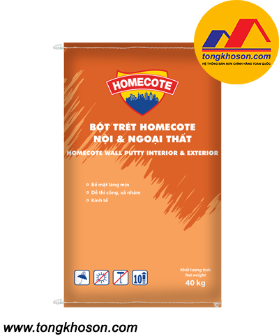 Bột trét tường Homecote Wall Putty nội và ngoại thất là bột trét (bột bả) dùng làm phẳng, mịn bề mặt trước khi thi công sơn, sử dụng cho cả tường nội và ngoại thất.