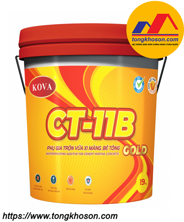 Phụ gia CT-11B gold là phụ gia ở dạng lỏng, thành phần chính là Acrylic biến tính Silicon và các chất phụ trợ khác. Sử dụng để trộn vữa xi măng, bê tông, có tác dụng ngăn ngừa sự rạn nứt của bề mặt, đồng thời làm tăng mác bê tông. Một sản phẩm phụ gia chống thấm tường/sàn của nhà sản xuất Sơn sân tennis Kova Việt Nam