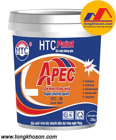 Sơn Apec 5in1 HTC08 là loại sơn nội thất mịn, không bóng, có thể dùng sơn Apec 5in1 HTC08 màu trắng để làm sơn trắng trần, còn sơn màu dùng làm lớp sơn phủ. Quý khách hàng quan tâm dòng sản phẩm sơn Apec nội thất mịn liên hệ ngay 0392.773.199