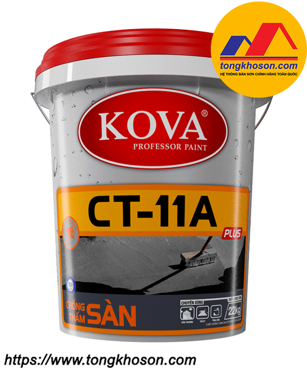 Sơn chống thấm sàn Kova CT-11A Plus có tác dụng ngăn chặn sự thấm nước, thích hợp cho các công trình như tầng hầm, bể nước, bể bơi, sân thượng, nền nhà, bờ tường, sê nô, sàn nhà vệ sinh, v.v…