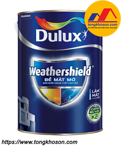 Sơn ngoại thất Dulux WeatherShield BJ8 bề mặt mờ là dòng sơn ngoại thất cao cấp của công ty Dulux được sản xuất dựa trên công nghệ Hydroprotek tiên tiến của Anh. Bề mặt sơn bóng mờ ngoại thất có độ bền cao, khả năng chống lại nấm móc, bụi bẩn, bong tróc và tính năng làm mát diệu kỳ nên được nhiều khách hàng tin dùng.