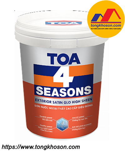 Sơn nước ngoại thất cao cấp TOA 4 Seasons Exterior Satin Glo High Sheen là sơn nước dành cho ngoài trời, thích hợp cho việc trang trí ngoại thất trên các bề mặt cũ và mới như bê tông, tường xi măng, gạch ngói, v.v…