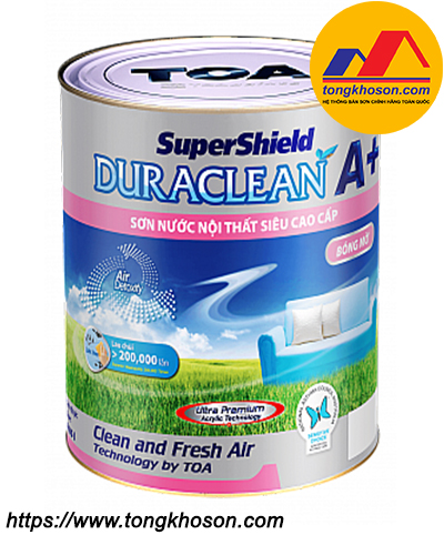 Sơn TOA SuperShield DuraClean A+ bóng mờ là sơn nội thất siêu cao cấp được chế tạo từ nhựa Acrylic nguyên chất, mang đến tính năng dễ lau chùi nên không lưu lại vết bẩn sau khi lau.